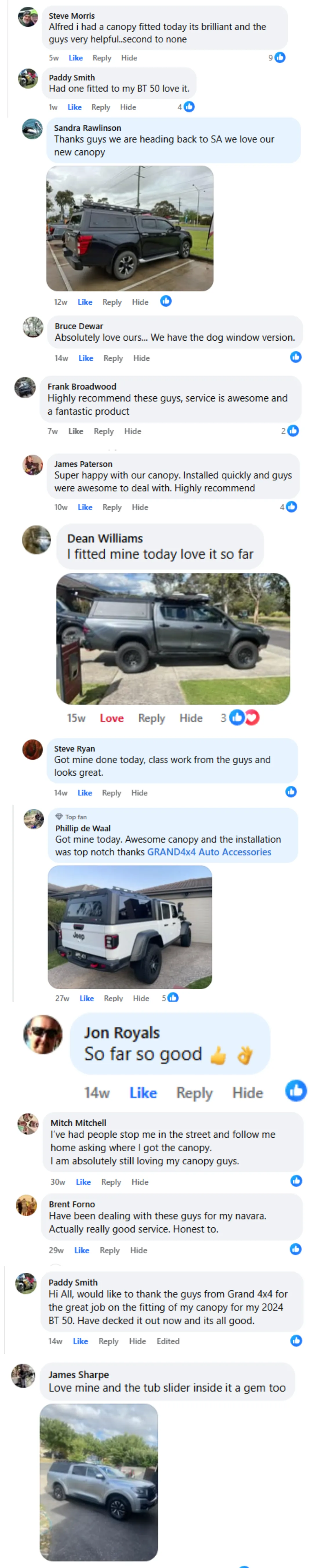 "Got new canopy installed on my ranger wildtrack. Looks awesome. Doesn't leak great job. And extremely helpful and friendly service. Highly recommended."